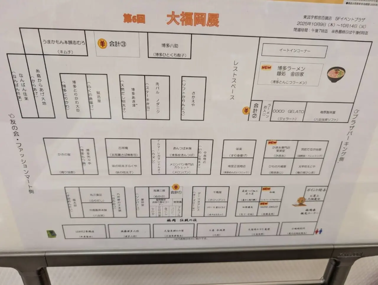 気になるマップはこちら。今回のイートインは、初出店の、金田屋・スペシャルラーメン。濃厚なのに臭みの無い、クリーミーなスープの絶品ラーメンがいただけます。