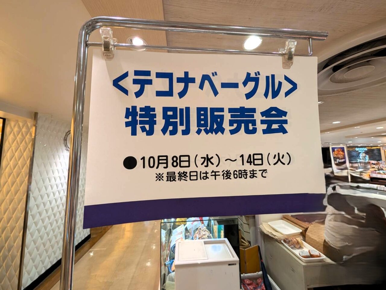 ただいま、東武宇都宮百貨店 1階 スイーツテラス イベントスペースにて、テコナベーグルの期間限定特別販売会が開催中です。最終日は、2025年10月14日(火)18時です。