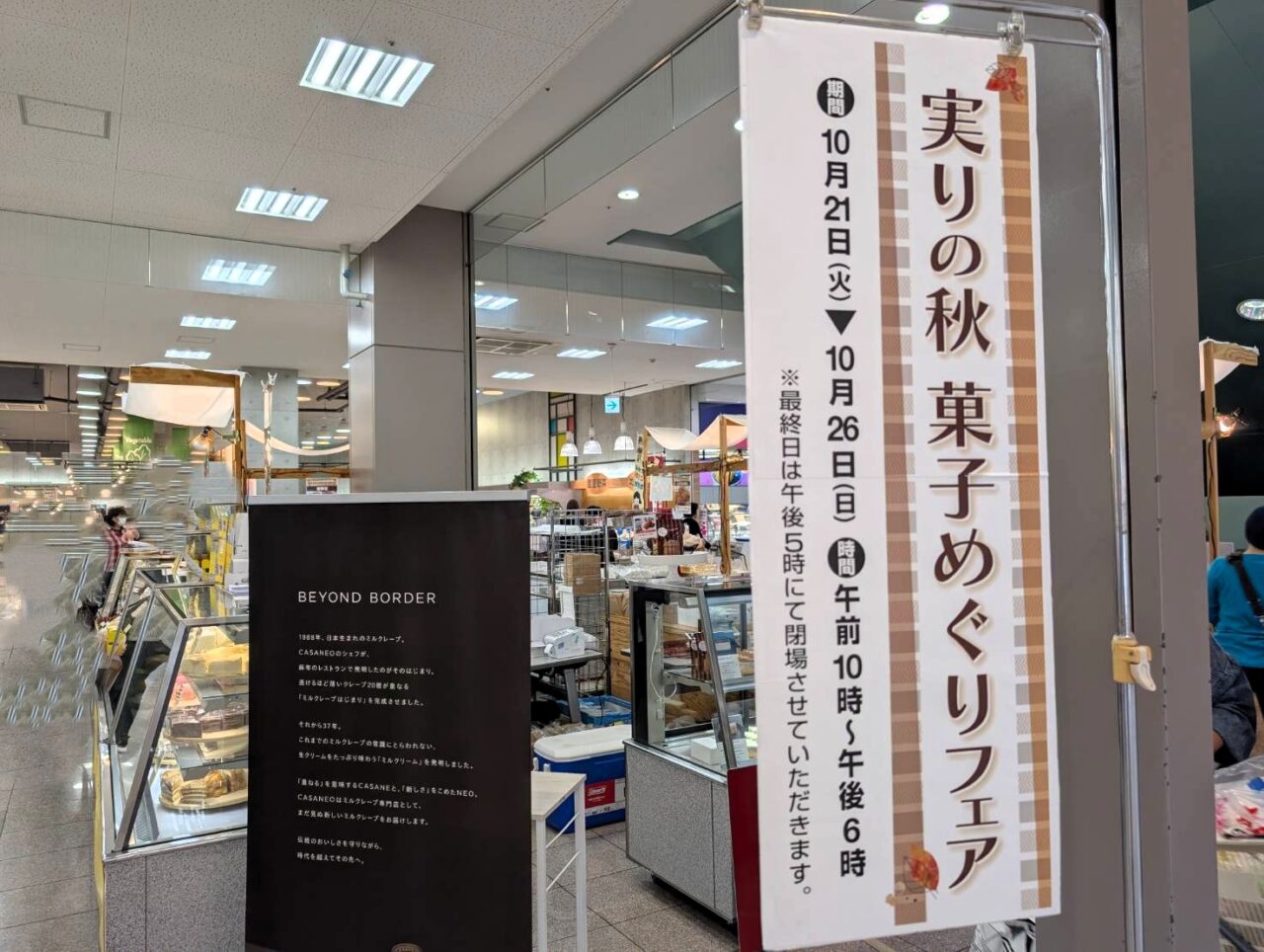 ただいま、FKDインターパーク店 1F 案内所横特設会場にて、実りの秋 菓子めぐりフェアが開催中。最終日は、2025年10月26日(日) 17時閉場です。