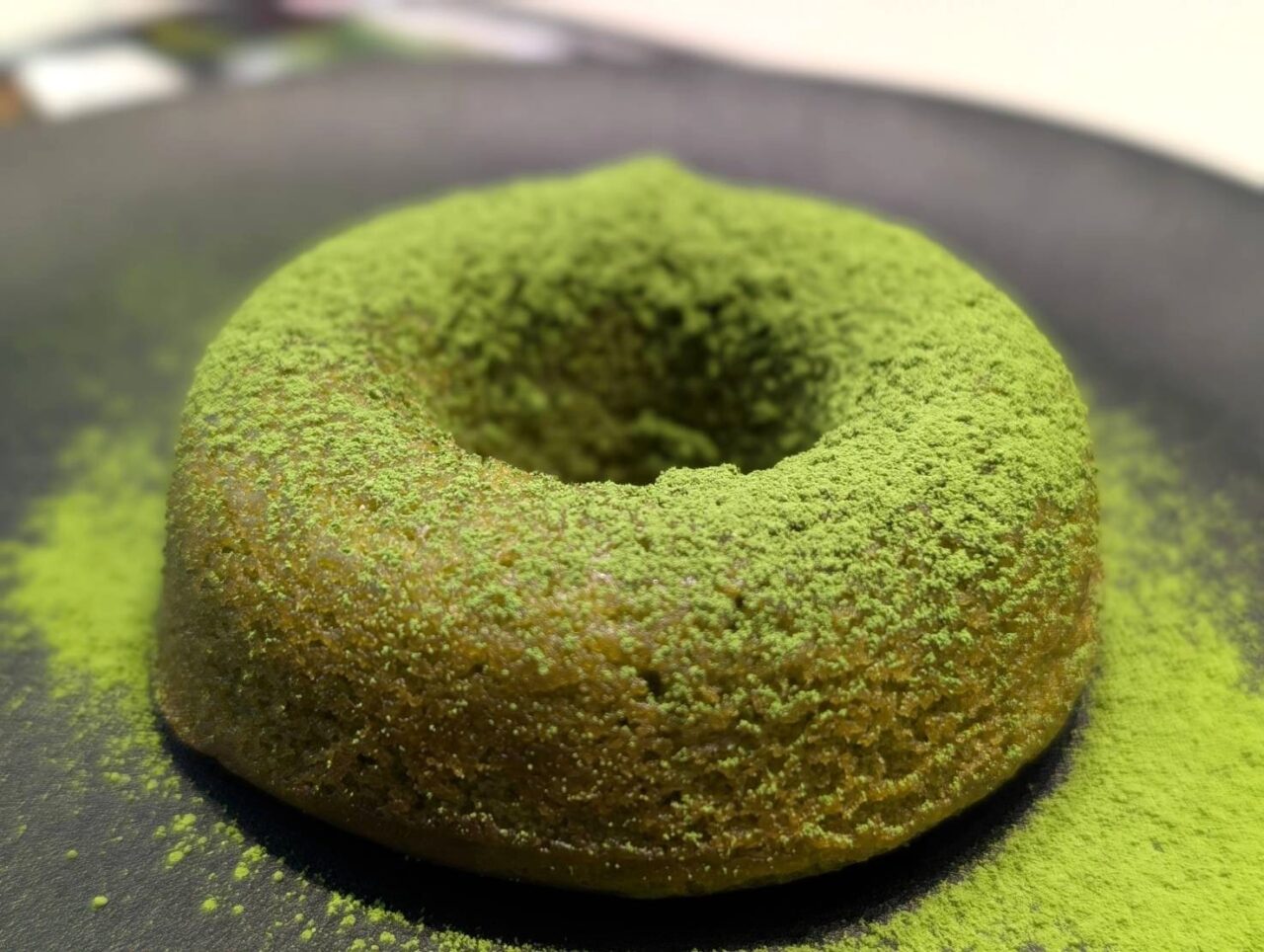 抹茶をたっぷりとかけた焼ドーナツは、しっとりとした生地にバターの香りがふんわりと広がり、抹茶のほろ苦さとのバランスが絶妙です。香り豊かな抹茶パウダーがドーナツのやさしい甘みと合わさることで、和のスイーツらしい上品な味わいを楽しめる逸品です。