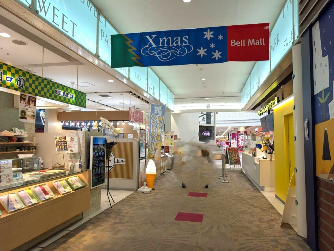 場所は1階のスイートパーク内。みやのスマイルクレープと牧場アンテナショップの間。お向かいは、カルディコーヒーファームです。