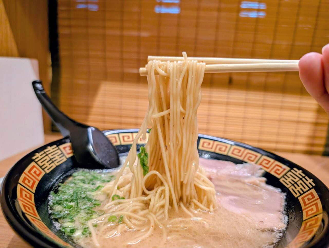 基本のかたさの麺は、スープをほどよく吸い込み、まろやかな喉ごしを生み出します。濃厚なスープをまといながらも、麺の風味がしっかりと際立ち、小麦とスープの一体感が広がって、思わず箸が止まらなくなる味わいです。