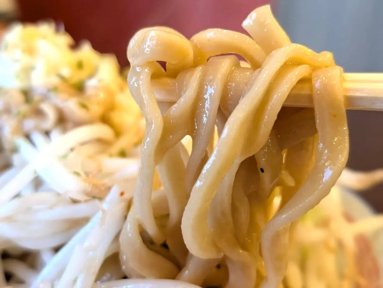 ワシワシ食感の麺は食べ応え抜群。濃厚でこってりなのに、不思議なことに後味は淡麗。まさにG系ならぬB系! ぜひ味わってみて。