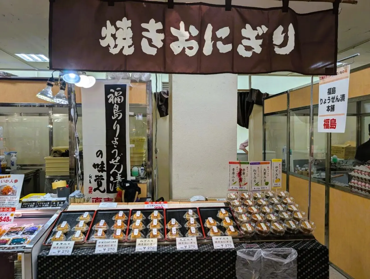魅力的なお店が並ぶ中、この日の私のお目当ては、福島県 りょうぜん漬本舗の焼きおにぎり。
