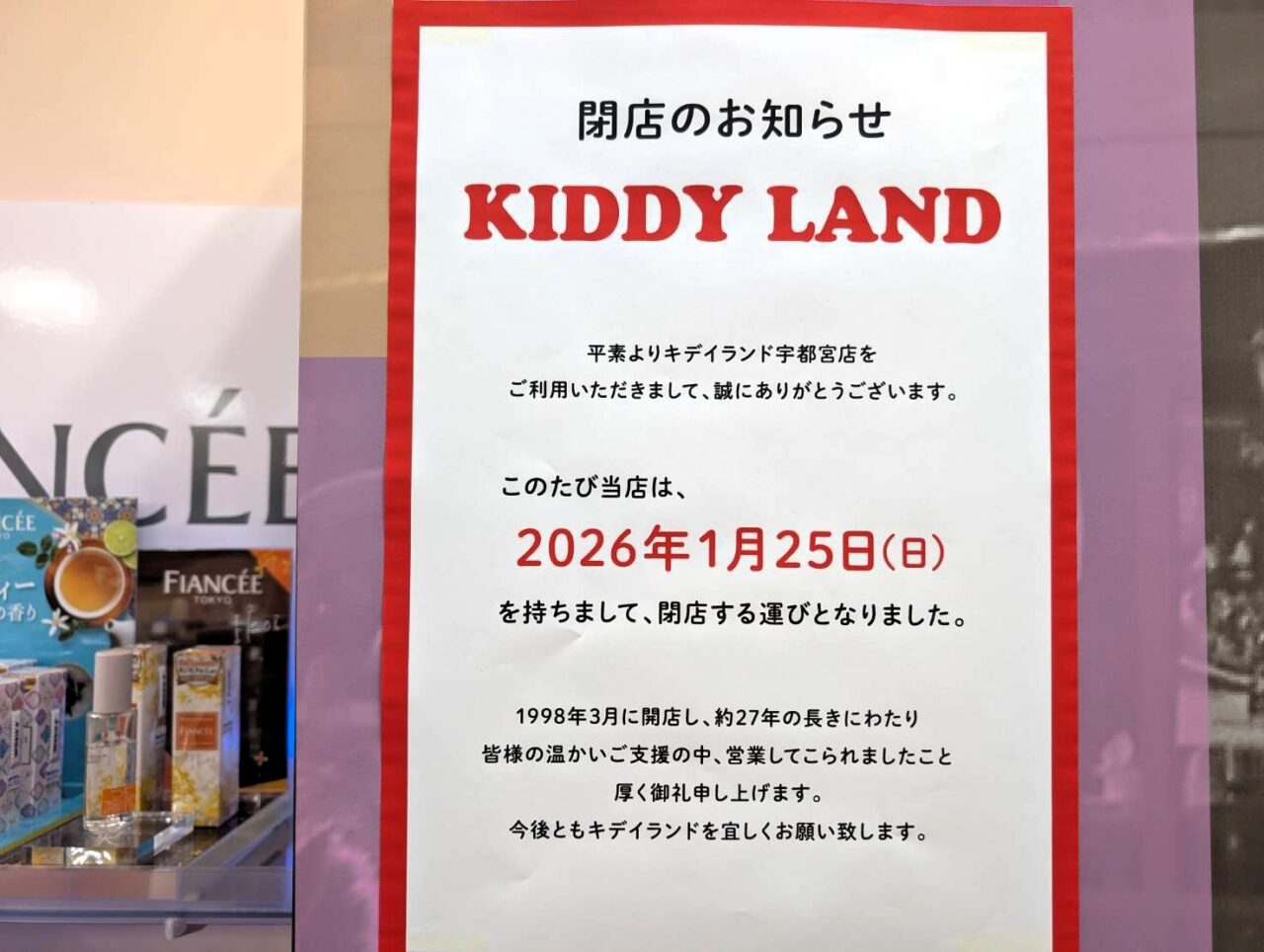 【宇都宮市】残念なお知らせです。FKD宇都宮店の『KIDDY LAND』が閉店します。