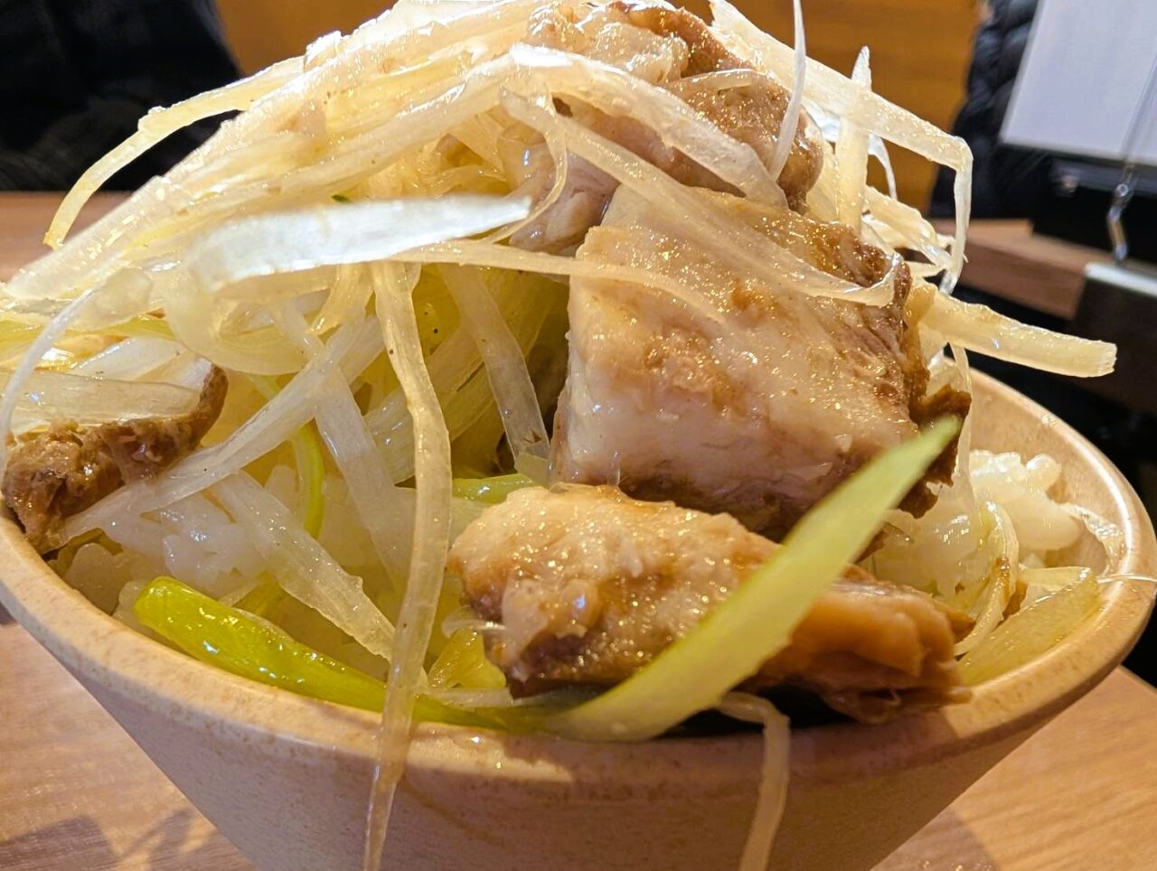 チャーシューの代わりに、とろっとろでぷるっぷるの鶏皮をたっぷりトッピング。しっかり炙られているため、口に運ぶたびに香ばしさが広がり、たまらない一杯です。