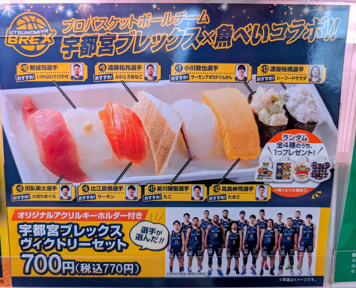 【宇都宮市】推しが推すお寿司を食べて応援しよう! ただいま『魚べい・元気寿司』にて『宇都宮ブレックス ヴィクトリーセット』が販売中! うつのみやグルメ紀行。寿司の旅♪