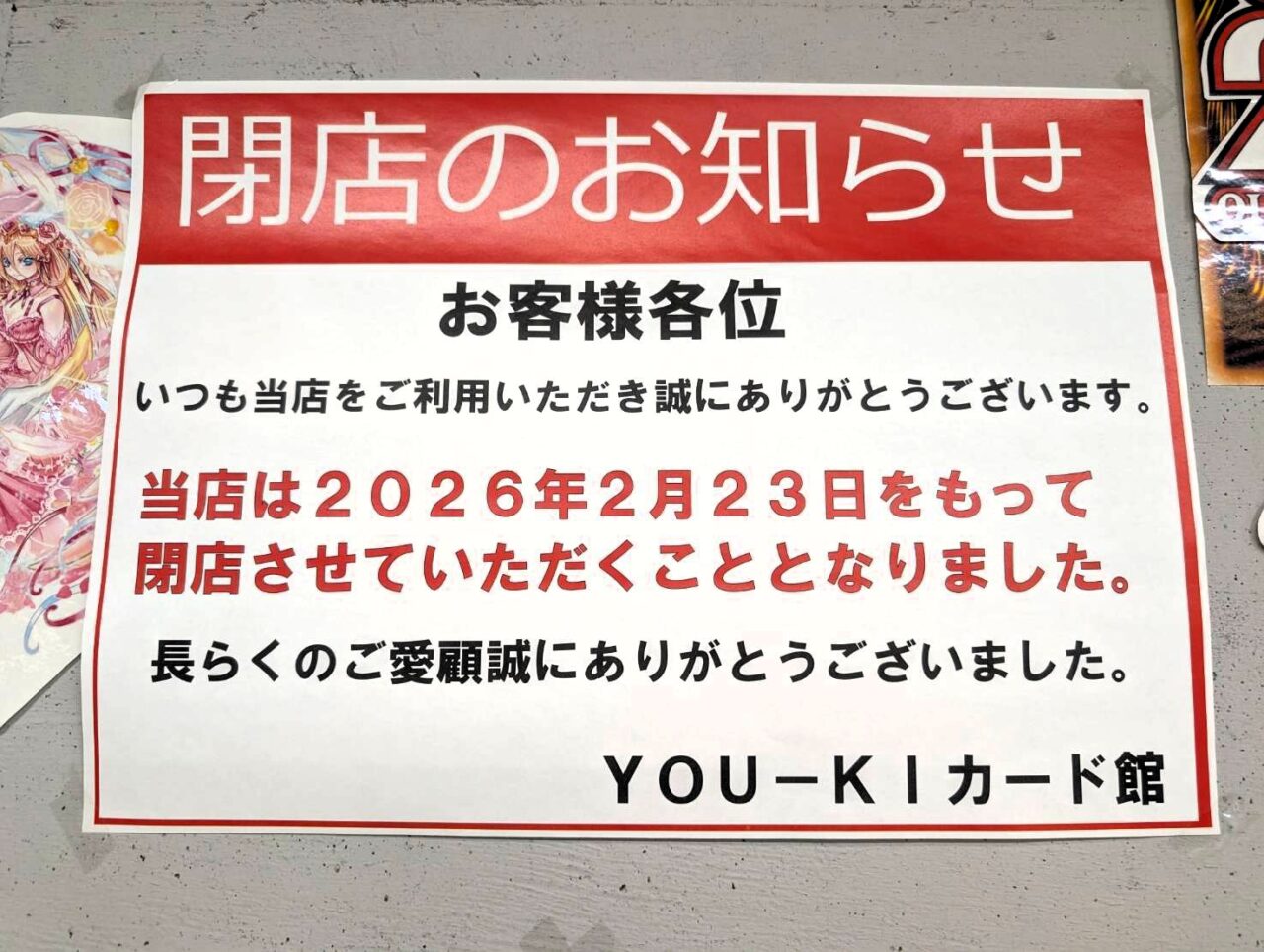 【宇都宮市】残念なお知らせです。オリオン通りFesta内の『遊基カード館』が閉店します。