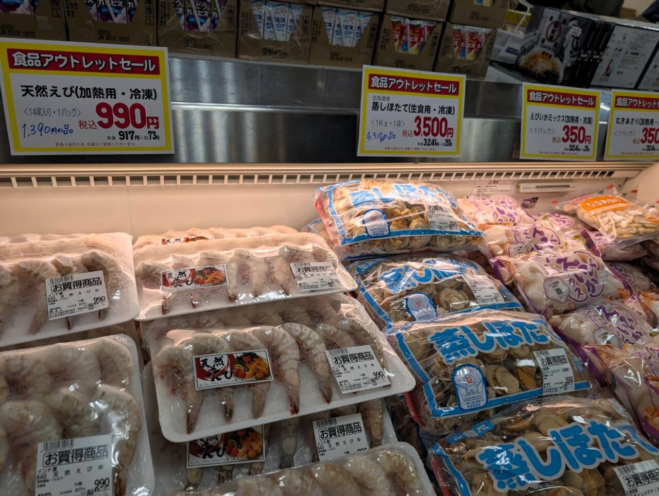 会場では、賞味期限が近い商品やパッケージに傷がある商品、季節限定品の余剰在庫など、品質には問題がないにもかかわらず、通常よりお得な価格で提供される商品を販売。