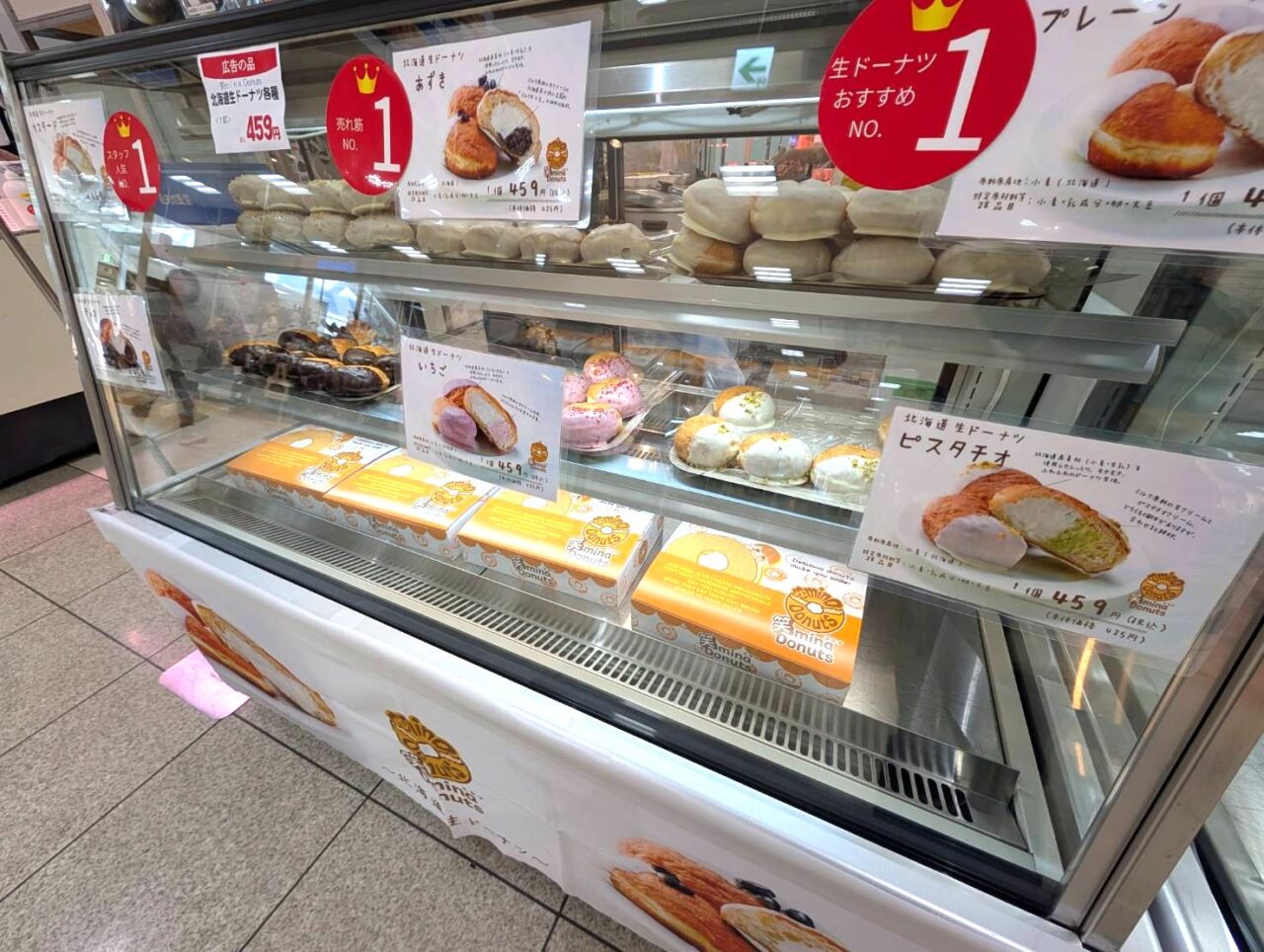 魅力的なお店が並ぶ中、この日の私のお目当ては、北広島市の笑mina Donuts。