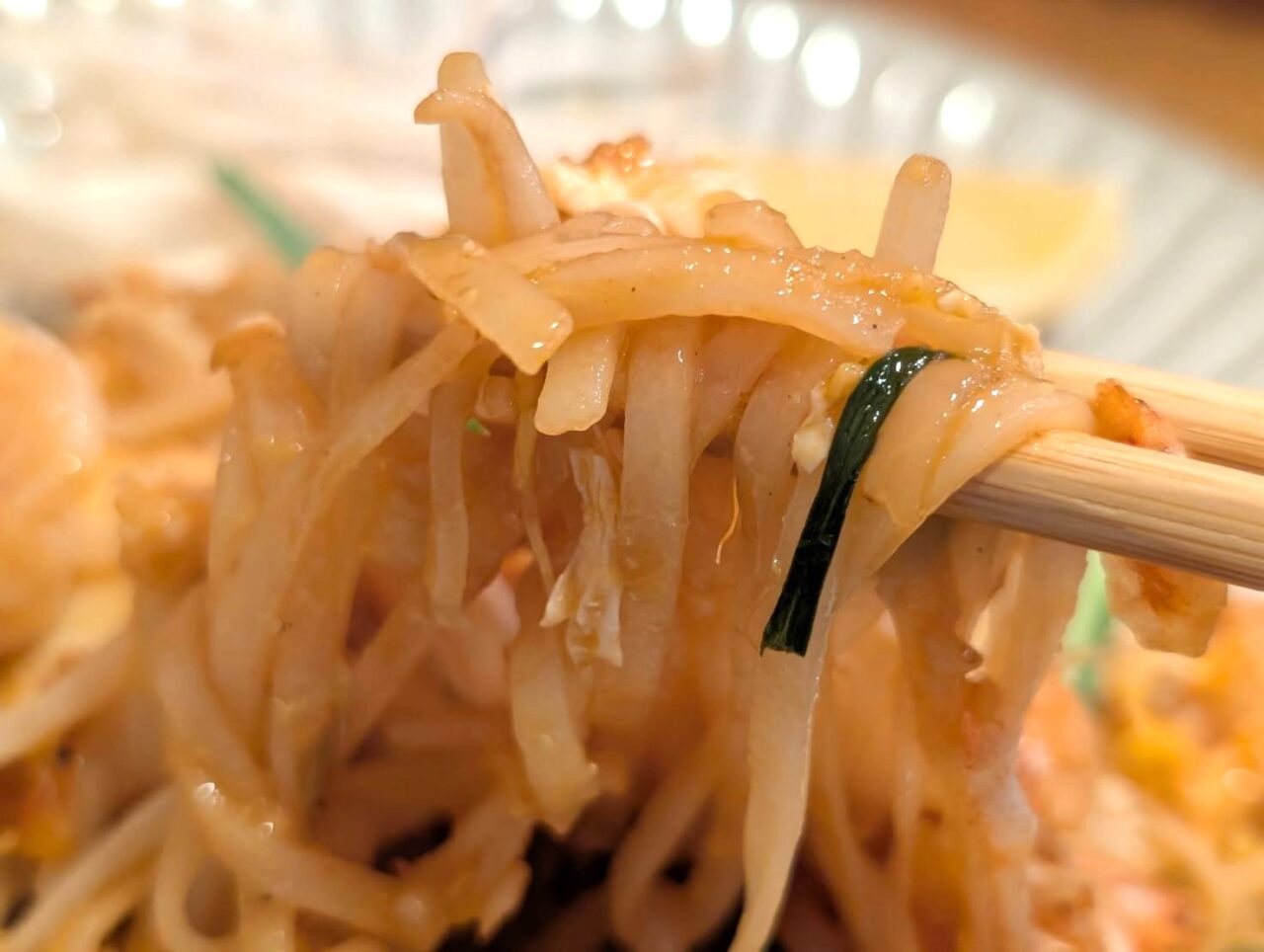 パッタイはやや甘めの味付け。それでいてくどさは一切なく、食べ進めるほどに旨みが広がります。その秘密は、ソースに甘さにタイ産のフルーツを使っていることにあるそうです。