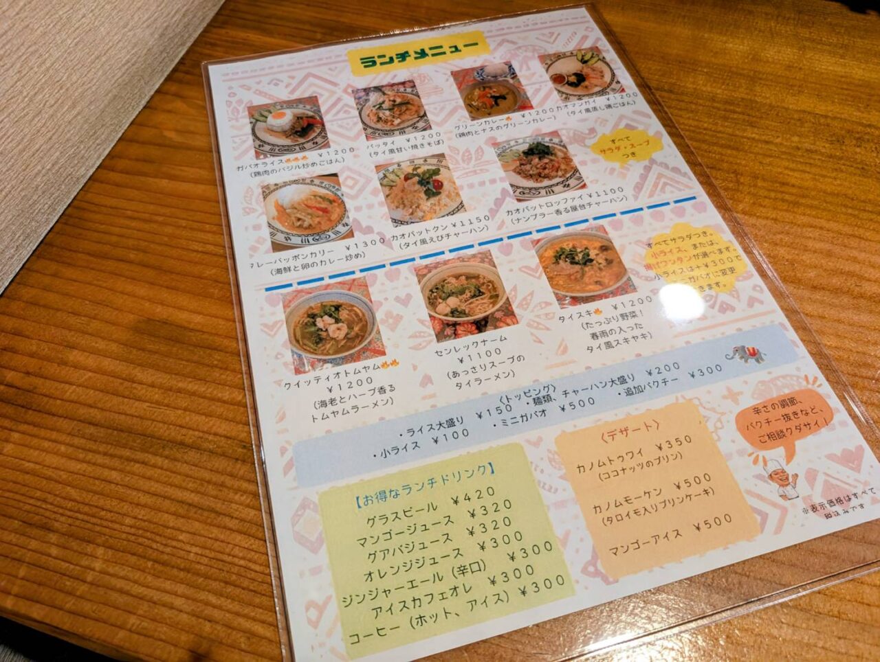 気になるランチメニューはこちら。こちらのお店は、オーナーさんが日本人、シェフがタイ人。本格的な味わいでありながら、日本人の口にも合うと評判です。席でお隣にいらした常連さんは「どれを食べても美味しくて迷ってしまう」と話していましたよ。