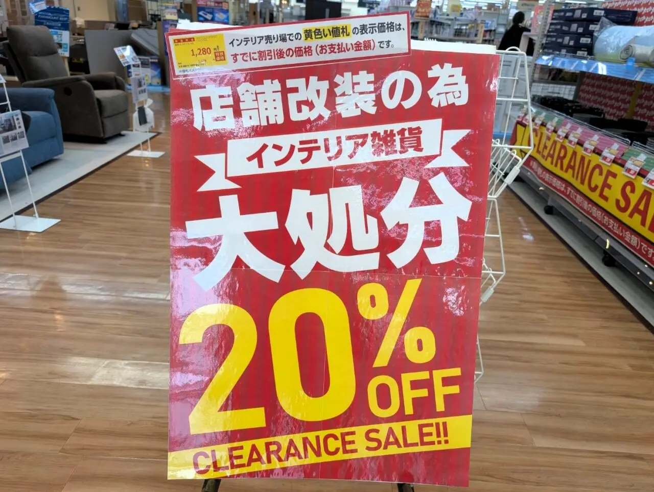 なお、家電住まいる館YAMADA駒生店では現在、店舗改装に伴いインテリア雑貨や日用品が20%オフとなっています。お店の方によると、ゴールデンウィーク後には改装工事のため休業を予定しているとのことです。詳細は公式HPをご確認ください。