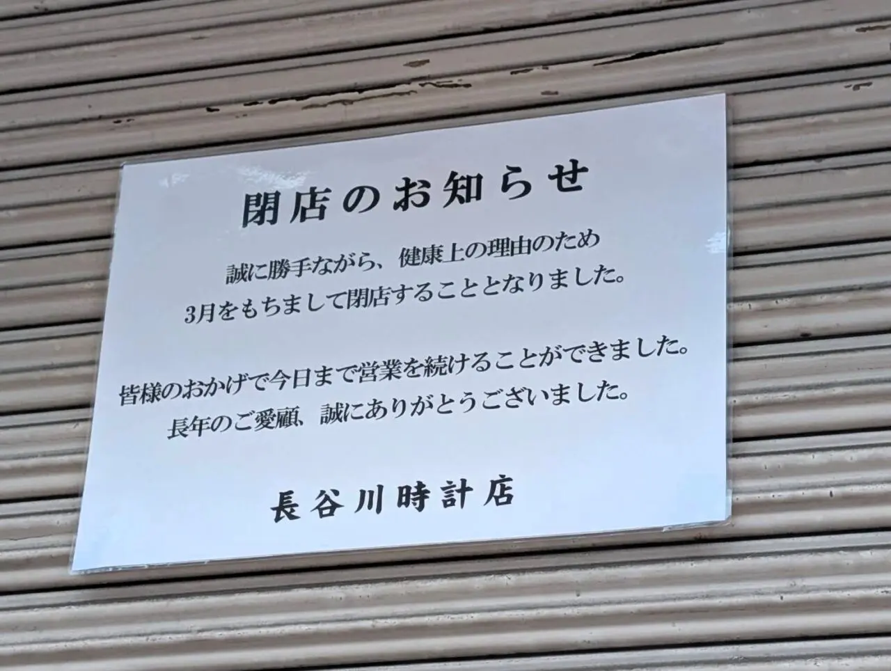 【曲師町】長谷川時計店:2026年3月閉店